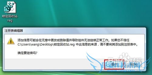 4、双击运行该注册表,当出现下列提示时,点“是”即可。