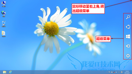 3. 将鼠标移动至屏幕右上角,调出超级菜单;