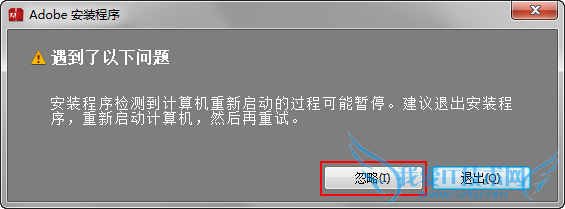 2、解压完毕后会自动启动安装程序,在这个过程可能会出现下图所示弹框,点击忽略即可。