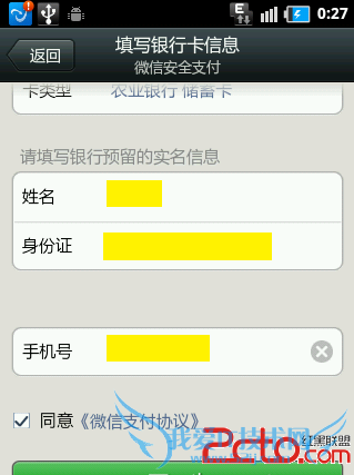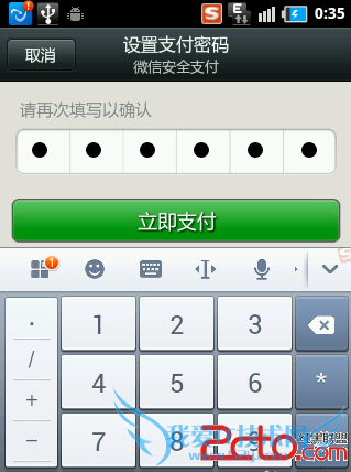 接着我们需要设置支付密码信息。输入完成后,就完成了微信与账户信息的绑定。以后就可以利用该服务实现在线支付的功能啦。