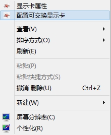 桌面右键配置可交换显示卡,则可以进入为应用程序单独设置图形性能的选项,状态有高性能/省电/基于电源/未分配。