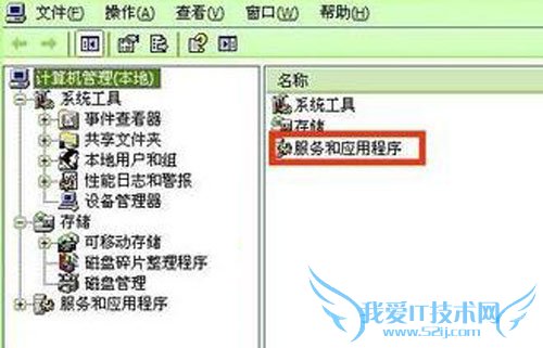 点击管理以后会出现计算机管理窗口,在计算机管理窗口右面点击服务和应用程序