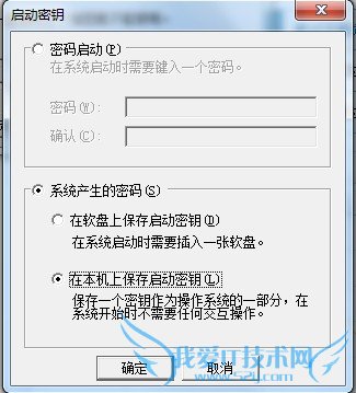 如果你不需要设置系统通过密码启动的话,那么就选择【系统产生的密码】的【在本机上保存启动密匙】即可。如上图所示。