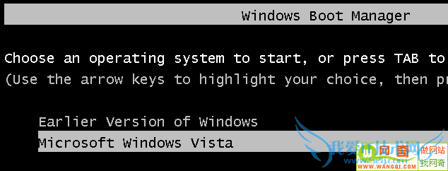 Vista安装好之后,系统就会运行Windows 启动管理程序,从中可以选择“Microsoft Windows Vista(微软Windows Vista)”或者是“Earlier Version of Windows(早期版本Windows)。