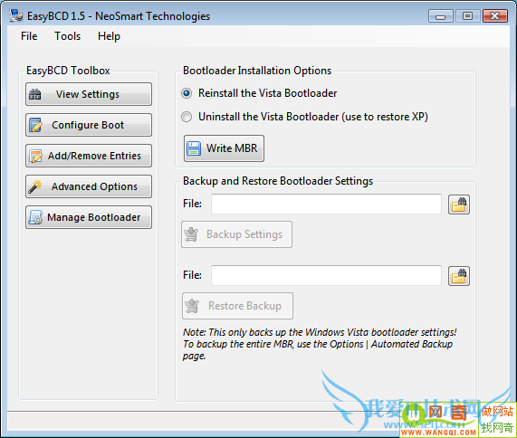 假如你确信双启动的确不适合你,而且要恢复使用XP操作,那还需要使用Vista MBR。幸运的是,EasyBCDy也能够帮忙。在“启动项管理”中,选择“卸载Vista启动项”,点击“写入MBR”。重新启动电脑之后,Vista启动项就消失了---这样系统就可以直接进入Windows XP。在XP环境下,Vista系统分取变为第二分区—D分区,它可以安全的擦除。