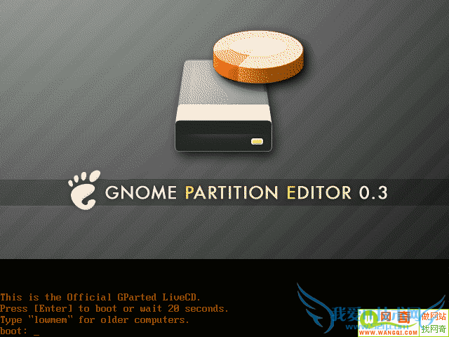 如果用户没有 Windows PE2.0,这儿还有一款十分强大的工具—GParted(Gnome Partition Editor,Gnome分区编辑器)。这是基于Linux的一款图形界面分区工具,它可以重新调整NTFS文件分区大小。