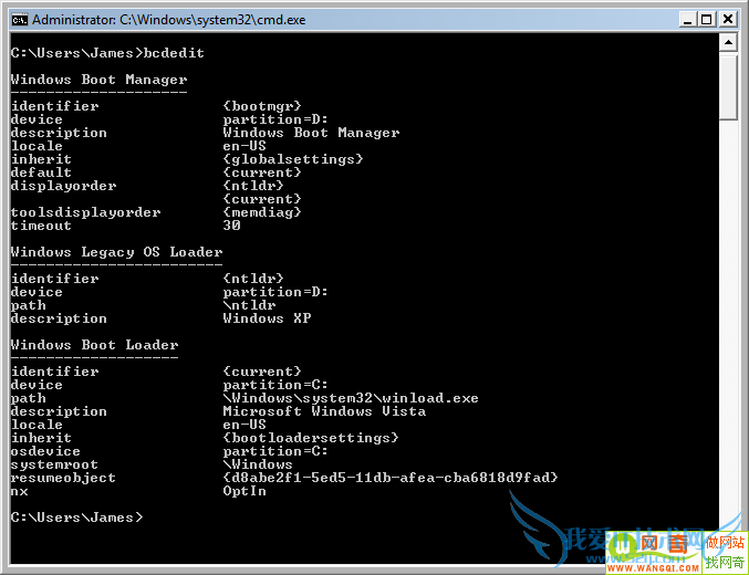 的确有点烦人, 而且不幸的是在Vista中不能像之前的Windows一样轻易的修改启动管理程序。用户仍然可以在系统属性中打开“启动信息选项”(右击“我的电脑->属性->高级->启动和故障恢复->设置),在这里用户可以选择某一操作系统作为默认启动系统,选择无时间间隔选项,这就成了。为了更改所有的启动项,用户必须在命令提示符中使用新的BCDEDIT工具。可是,这个工具并不是那么好用。虽然工具功能非常全面强大,但是很难使用。