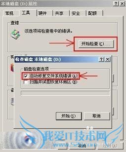 1、如果是从硬盘的某一个盘符复制到另一个盘符时出错;打开“我的电脑”——>在复制文件出错的盘符上(如D盘)点击鼠标右键——>选择“属性”——>弹出“本地磁盘(X:)属性”窗口,切换到“工具”选项卡中——>点击第一个项目中的“开始检查(C)”——>弹出窗口中,勾选中“自动修复文件系统错误(A)”——>点击“开始”——>此时如果系统提示“磁盘检查不能执行,因为磁盘检查实用程序需要独占访问磁盘上的一些Windows文件...”,直接点击“是”——>然后重新启动计算机后,将自动进行磁盘错误检查并且修复出错的文件;