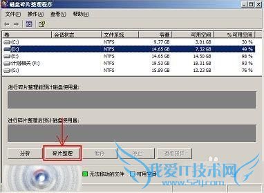 2、对出错的磁盘盘符进行“磁盘碎片整理”;点击“开始”菜单——>选择“所有程序”——>鼠标指向“附件”——>再指向“系统工具”——>单击“磁盘碎片整理程序”——>在“卷”下方选中出错的盘符,点击“碎片整理”——>耐心等待磁盘碎片整理结束,重新启动计算机即可;