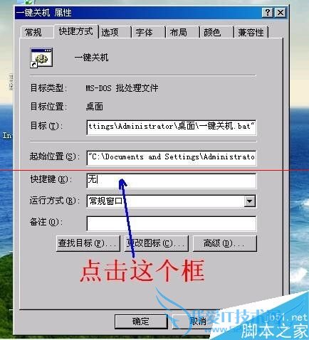 3、弹出属性窗口,在“快捷键”选择框中点击鼠标左键。