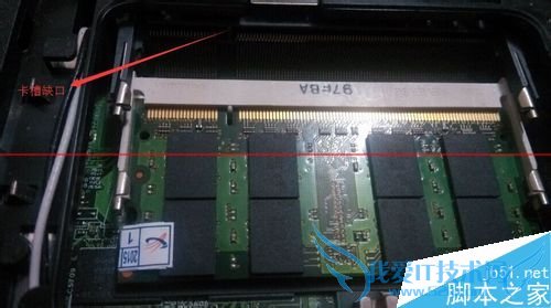 3、在插内存的时候要注意,插槽的夹子要打开,且内存条的金手指与卡槽要对应缺口,具体如下图所示