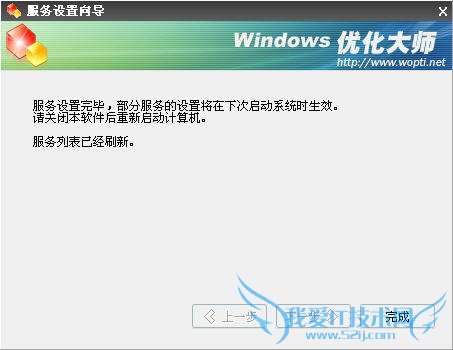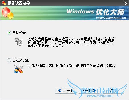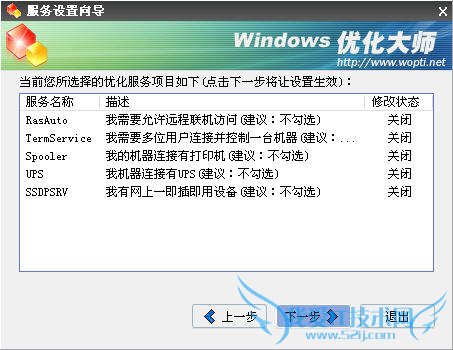 点击“设置向导”,Windows优化大师帮助您完成对后台服务的优化设置。