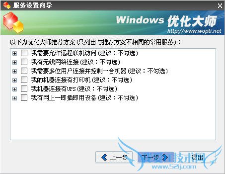 为方便用户优化后台服务,Windows优化大师提供了设置向导模块,通过此向导,用户可以方便地优化或恢复服务。