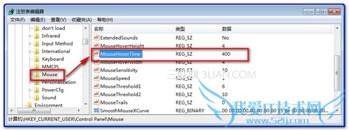 [HKEY_CURRENT_USERControl PanelMouse],将右侧"MouseHoverTime"值修改大些,默认值是"400",可改为“10000”。同样可以实现此效果。如下图所示: