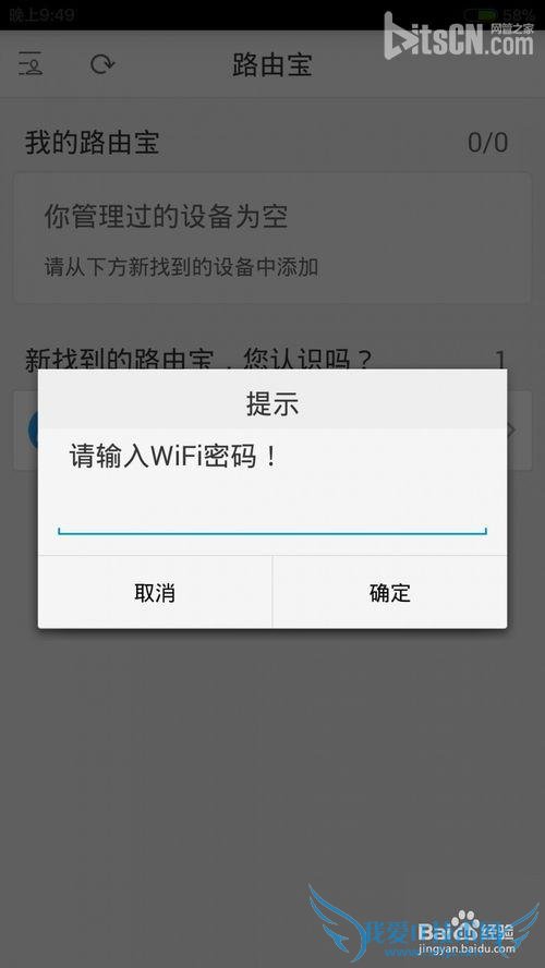3、下面是手机端的设置,下载“路由宝APP”然后打开进入输入密码进入后,你会看到有个新的设备,点击它后输入WIFI密码进行加入设备。