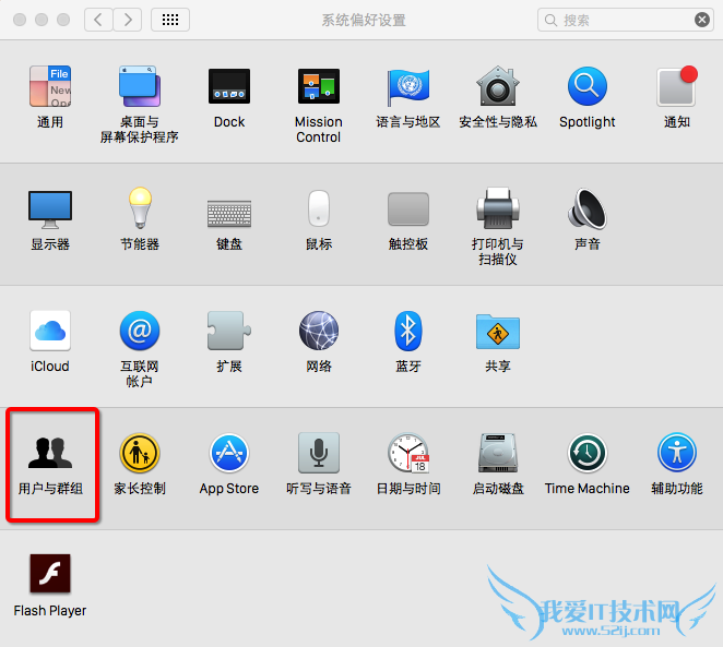 第二步、在系统偏好设置界面,点击“系统”项目下的“用户与群组”