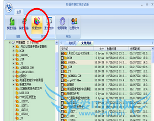 漫长的等待后,软件就会自动显示出U盘格式化之前的文件,选中我们要恢复的文件,然后单击“恢复文件”。