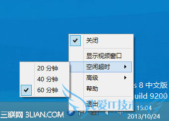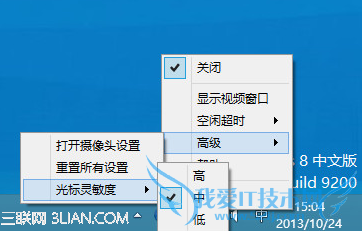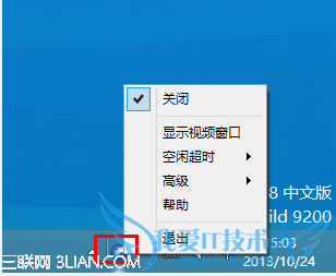 4. 当然在运行手势的时候,也可以关闭视频窗口,只要手势软件在后台运行即可。下图是后台运行手势软件。可以设置的属性。有关闭,退出功能,空闲设置,摄像头灵敏度等等功能。