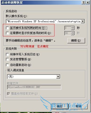 【我的电脑】-【属性】-【高级】-“启动和故障恢复”【设置】-“取消上面的两项 选项” -【确定】