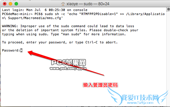 3、按下return键后,系统会要求输入密码,此时输入帐户管理员密码即可。