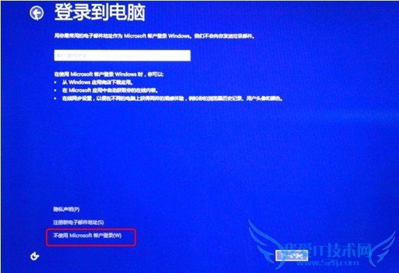 8. 登陆到电脑(如之前已经连接了无线网络,并且用户已拥有“hotmail、gmail”等微软邮箱,可输入后直接登录,如没有邮箱,可选择下方的“注册新电子邮箱地址”进行注册;如未连接无线网络,只能选择下方的“不使用 Microsoft 用户登录”);