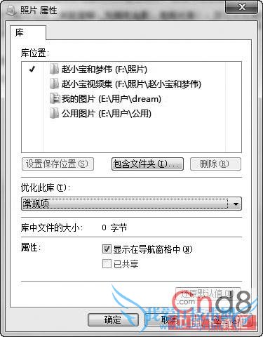 直接右击相应的库图标并选择“属性”,单击“包含文件夹”,直接将目标文件夹添加进来即可(图1)。这样,可以一次性将硬盘中能想到的位置大致全部入库。
