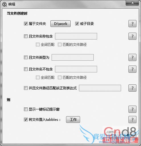 也可以使用规则完成智能添加标签的任务。先建立一个标签,win7系统下载再右击该标签并选择“打开Tabbles”,在打开的窗口中单击菜单“工具→自动标记规则”,单击“新建”按钮,现在就可以编辑智能标注文件的规则了。譬如,平时生成的工作文件都被放在“D:/Work”目录,那只要编辑图2中所示的规则即可将日后放到该目录的所有工作文件自动添加标签了。
