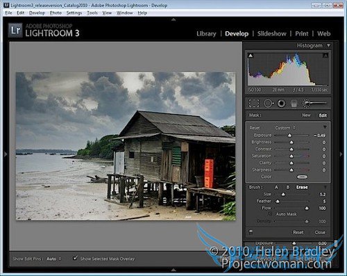 最后,我使用了Adjustment Brush(调整画笔)对照片中的塑料箱子做了一点调整。用画笔选中它,略微降低Exposure(曝光度),令其不会使读者分心。