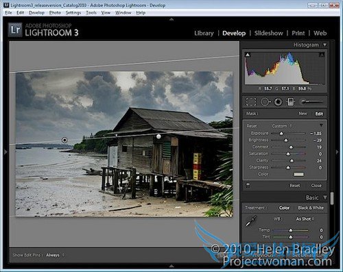 在Graduated Filter(渐变滤镜)中处理完毕之后,回到Basic(基本)面板中,进行一些微调使整张照片更协调。这里我调整了Brightness(亮度)和Fill Light(补光效果)来稍微加亮照片。