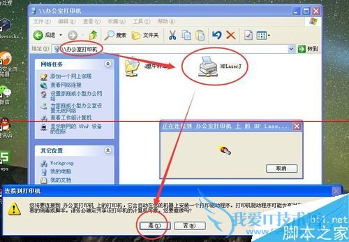 1.)办公室打印机(窗口)-HPLaserJet(双击)-连接到打印机(是) ---(如图一所示)