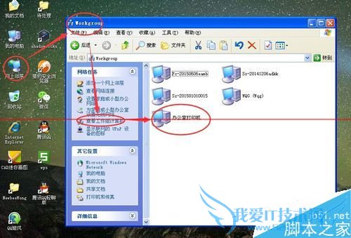 1)网上领居-鼠标右键-弹出Workgroup-点击左侧的查看工作组计算机-看到B电脑 办公室打印机-双击打开它(如图所示)