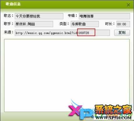 然后复制音乐ID也就是那段数字【如下图红色圈圈位置的数字】