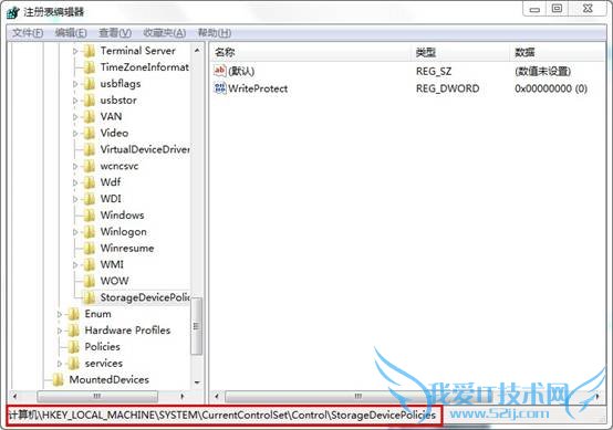2. 进入注册表编辑器后我们依次找到:HKEY_LOCAL_MACHINESYSTEMCurrentControlSetControlStorageDevicePolicies 如下图所示