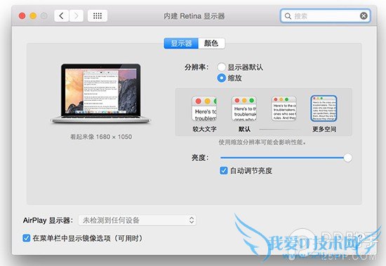 MacBook Pro 13英寸的Retina显示屏的最好显示分辨率是1680x1050px。可以在系统偏好设置内开启。