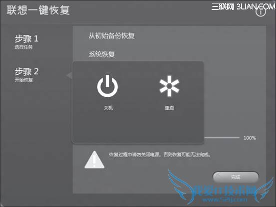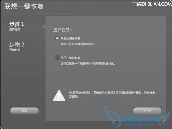 注意:初始备份的操作仅能够进行一次,此后将无法再次选择该项操作。建议您在安装Windows 和随机驱动和软件后,就进行此项操作,否则有可能出现备份空间不足。