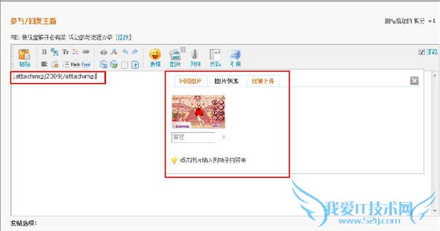 2.不论是自己发帖,还是回复信息的高级模式下,都是以下图片的布局,请您选择红框里的图片选项。