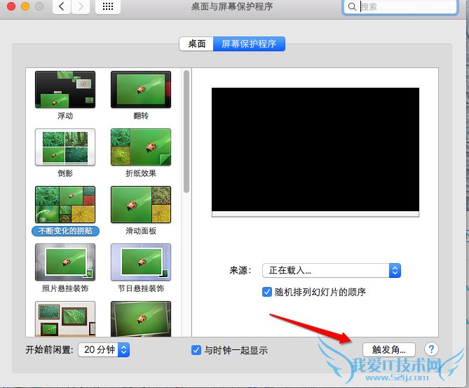设置触发角功能很简单,进入系统偏好设置下的桌面与屏幕保护程序 ,点击窗口右下角的触发角(Hot Corners)即可。
