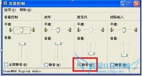 3. 返回到音量控制界面找到麦克风将下面的“静音”打上对号。