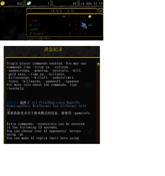 我想和电脑玩SOLO.以前在网上看到过用命令让选完英雄后就变成603的.开始的时候也是双方名选一个,其它的都是打开,现在我下了个6.70C AI的,把那个命令给忘了,找了好久都没找到,有高手知道么.