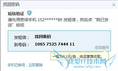 第三步、在出现的“找回密码”界面,老老实实发送短信吧,其他方法不好用(马化腾要你花银子,没办法),按要求短信发送完成后,点击“为我已发送”