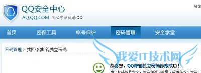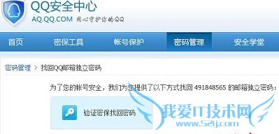 第一步、首先登录QQ安全中心,http://aq.qq.com/,点击密码管理选项,在账号中输入自己的账号,密码类型中选择“QQ邮箱独立密码”,然后输入验证码后,点击下一步