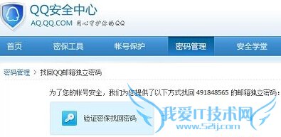 第二步、在随后出现的“找回QQ邮箱独立密码”界面,点击“验证密保找回密码”