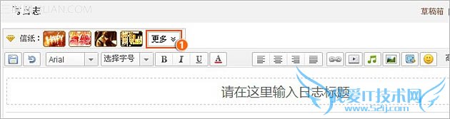 第二步、进入“写日志”后,点击信纸后面“更多”=》“赠送信纸”;
