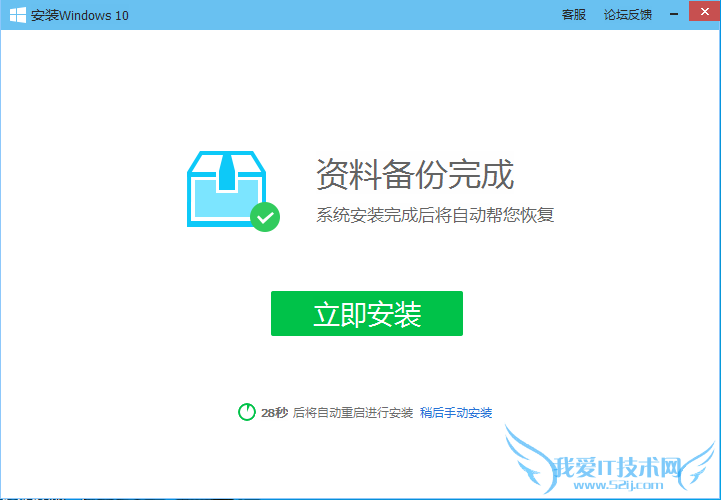 在资料备份完成后,点击“立即安装”则开始系统安装;