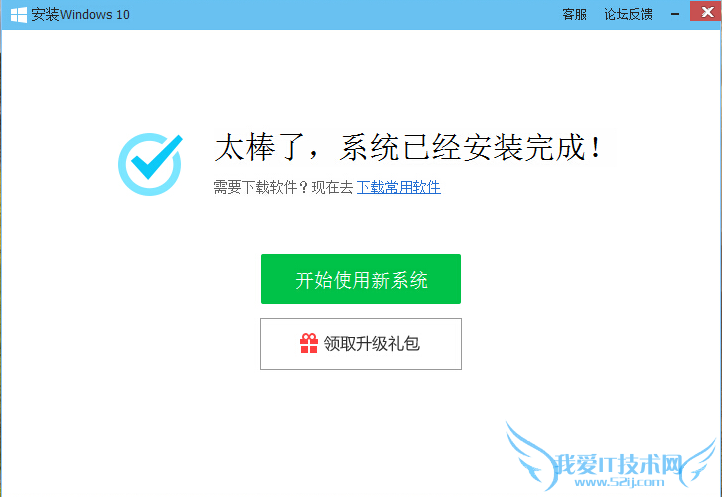在一段时间的安装重启后,系统安装完成,升级成功则进入Windows10,同时别忘了领取电脑管家为大家准备的升级礼包哦~