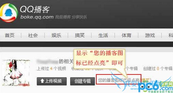 第二步:在“您还没点亮播客图标(点亮)”这里点击“点亮”;