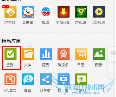 2、点击更多以后会出现许多栏目,其中精品应用里便是签到这一栏