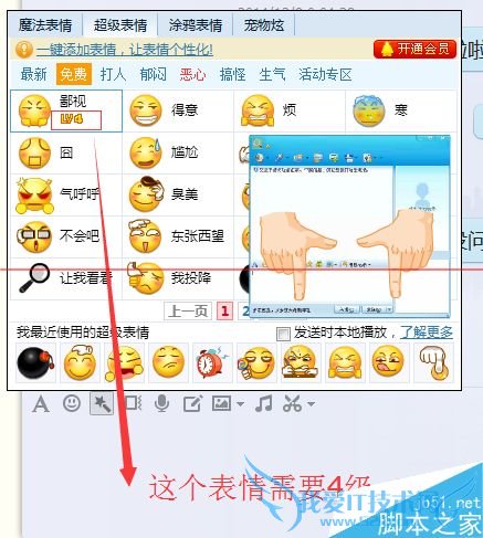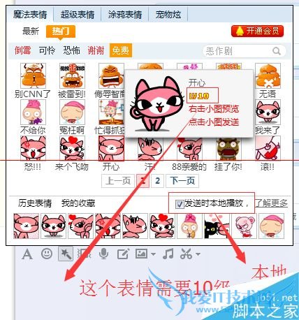 8、选中某一个魔法表情就可以进行发送了。和超级表情一样,免费魔法表情也有QQ级别的限制。还有,发送时,也可以勾选本地播放。