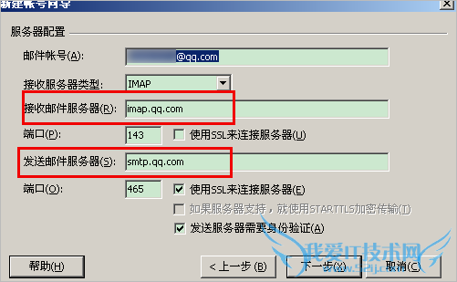 接收邮件服务器:imap.exmail.qq.com (端口 143),使用SSL,端口号993