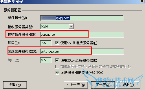 接收邮件服务器:pop.exmail.qq.com (端口 110),使用SSL,端口号995